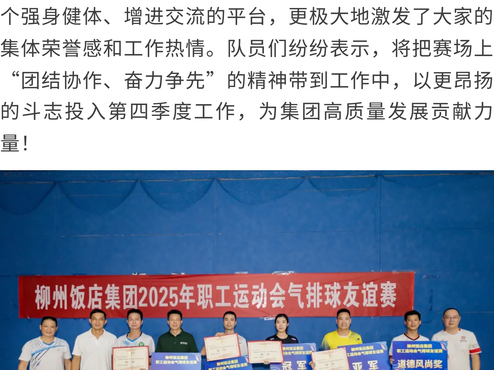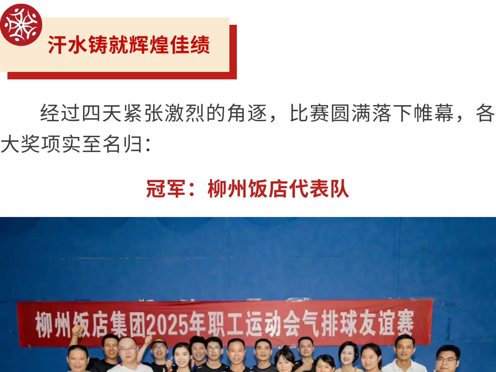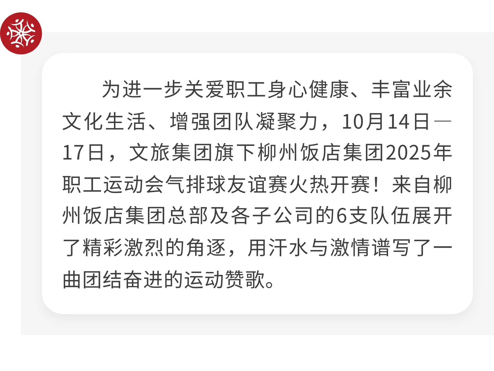 【引爆激情 “扣”動未來 】柳州飯店集團2025年職工氣排球賽燃情收官 發(fā)布時間:2025年10月22日 10時來源:本站原創(chuàng)瀏覽:78 人次