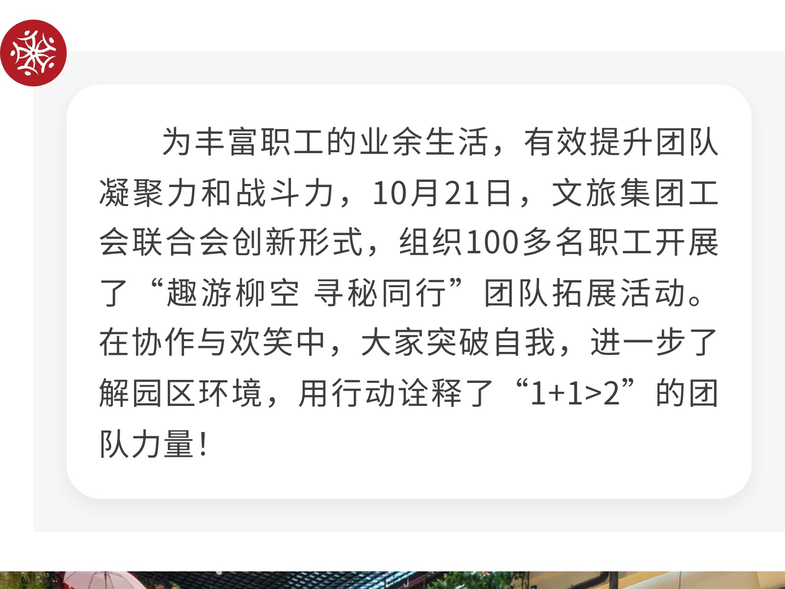 趣游柳空,尋秘同行!文旅集團開展團隊拓展活動,玩出滿滿凝聚力 發(fā)布時間:2025年10月23日 10時來源:本站原創(chuàng)瀏覽:106 人次