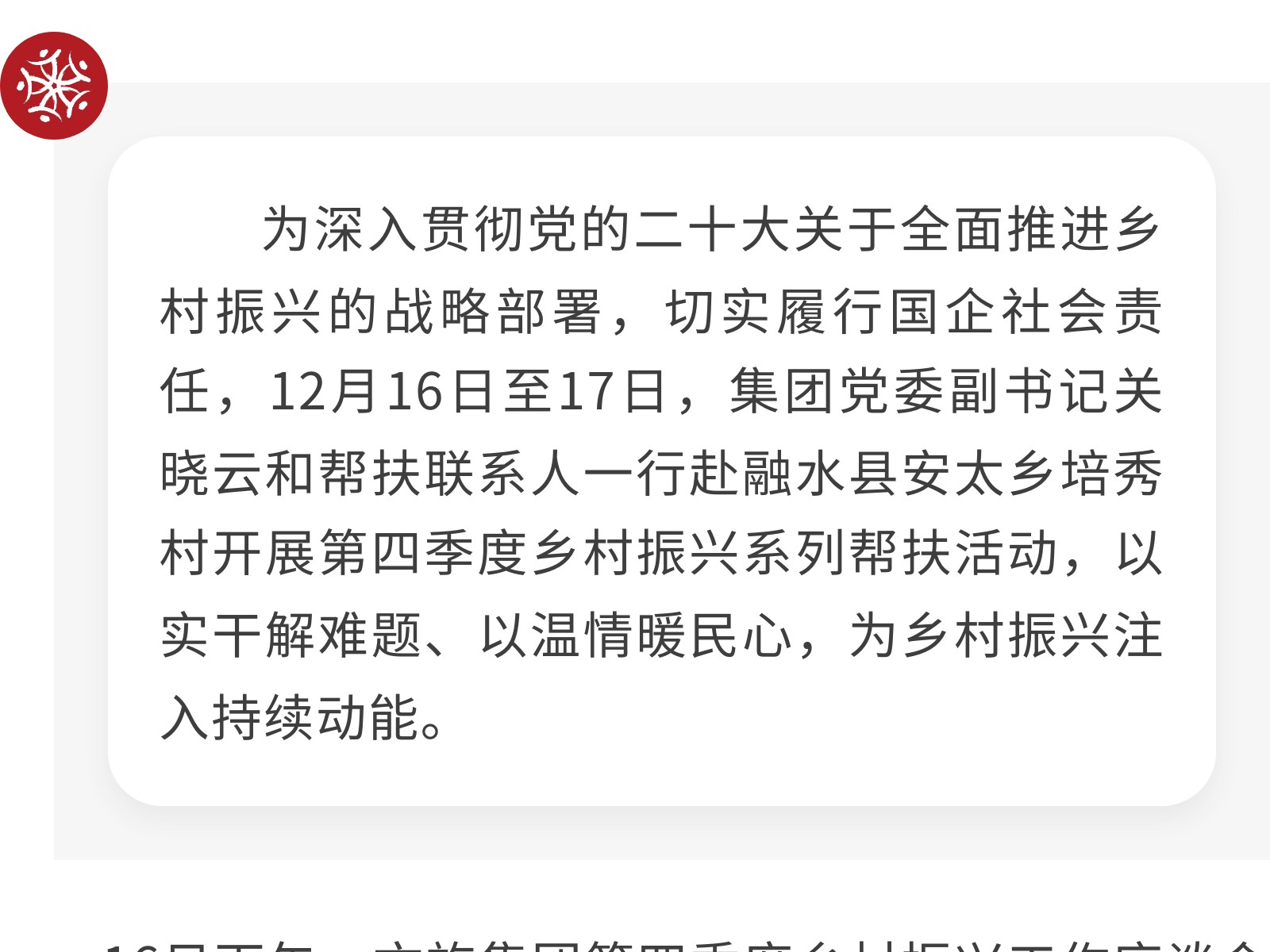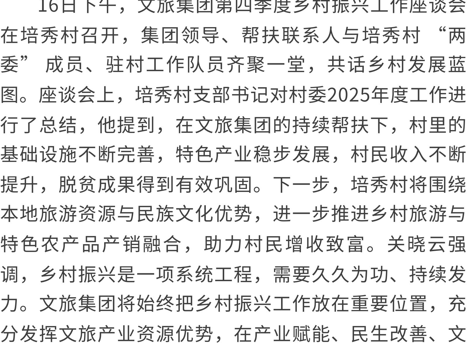 【文旅賦能繪新卷 結(jié)對(duì)幫扶暖心田】文旅集團(tuán)開(kāi)展第四季度鄉(xiāng)村振興工作 發(fā)布時(shí)間:2025年12月19日 10時(shí)來(lái)源:本站原創(chuàng)瀏覽:58 人次