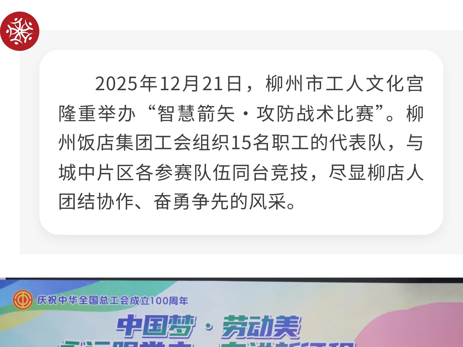 智慧箭矢,誰與爭鋒!——柳州飯店集團工會戰(zhàn)隊閃耀城中職工文化活動賽場 發(fā)布時間:2025年12月30日 11時來源:本站原創(chuàng)瀏覽:60 人次