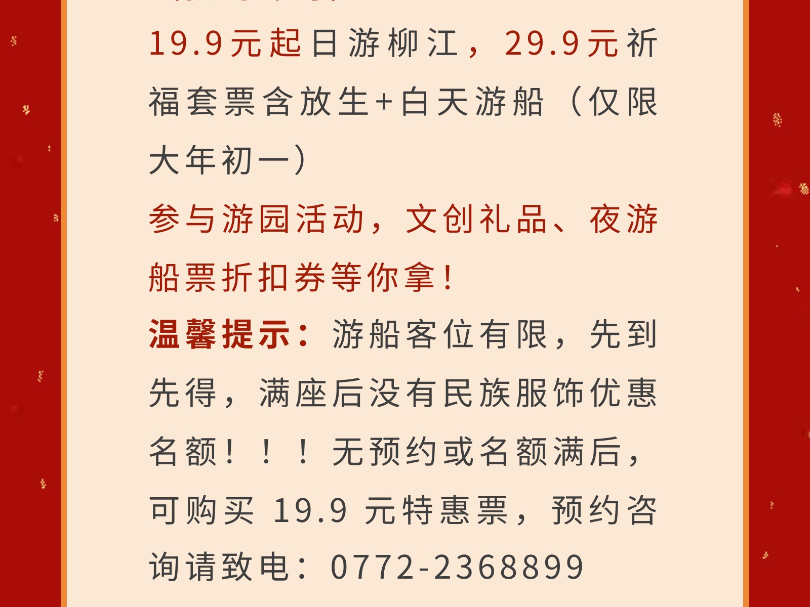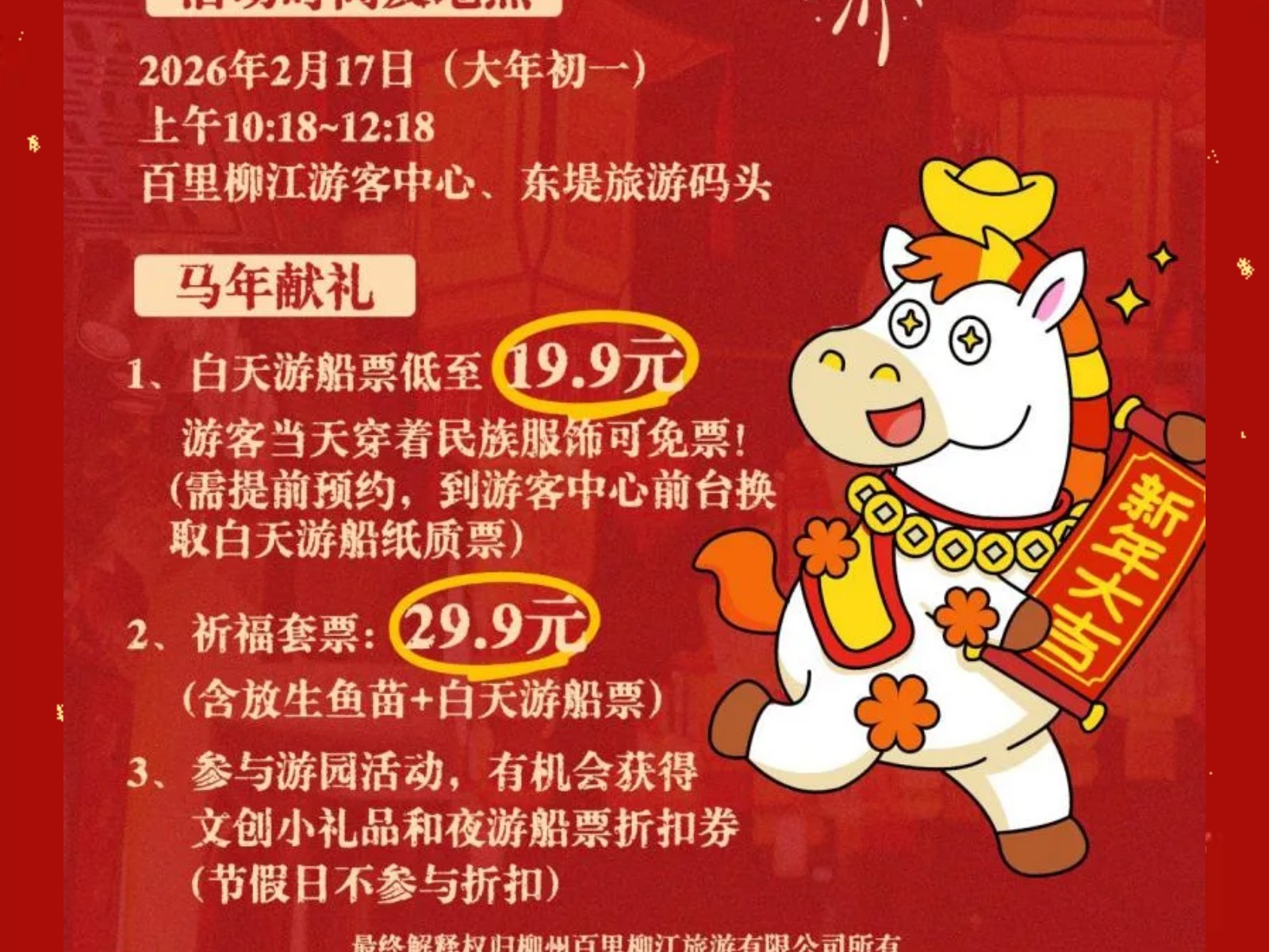 穿民族服飾=免船票!解鎖百里柳江景區(qū)大年初一“薅羊毛”的正確姿勢! 發(fā)布時(shí)間:2026年01月26日 12時(shí)來源:本站原創(chuàng)瀏覽:33 人次